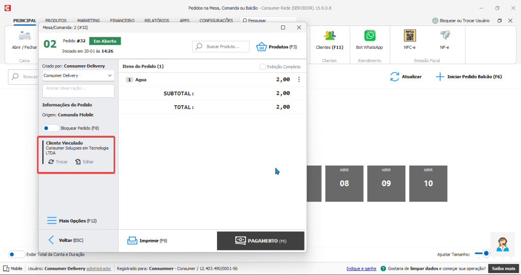 Voltando à tela da venda, vincule o cliente ao pedido:
