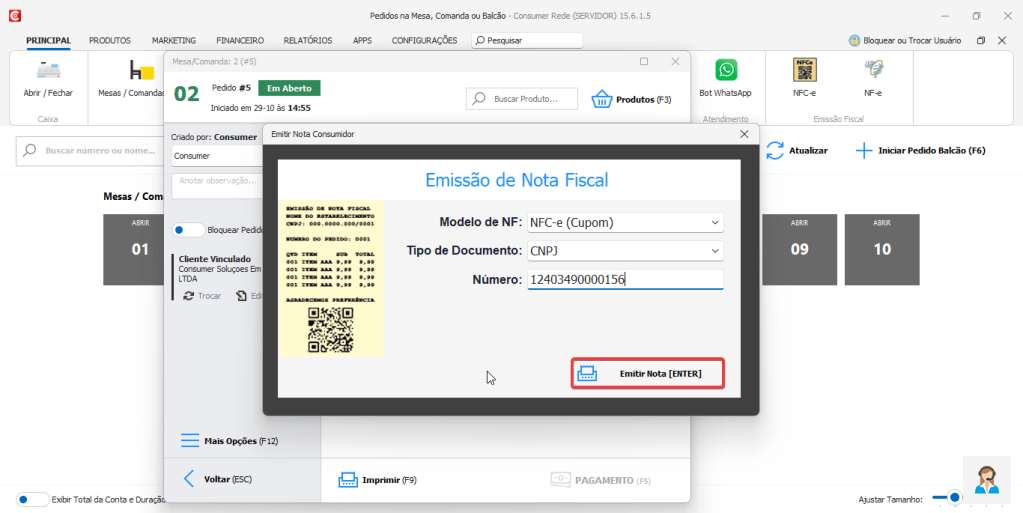 O Programa Consumer é homologado para para emissão de NF-e (Nota Fiscal Eletrônica) para bares, restaurantes e todos os estabelecimentos da área alimentícia. A emissão de NF-e no Consumer é realizada como uma operação de venda presencial referente a um pedido para o consumidor final.