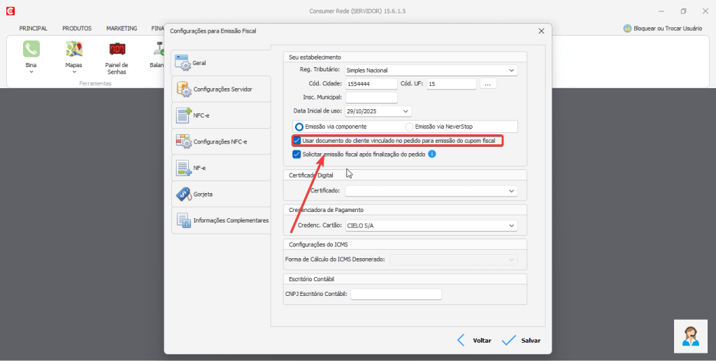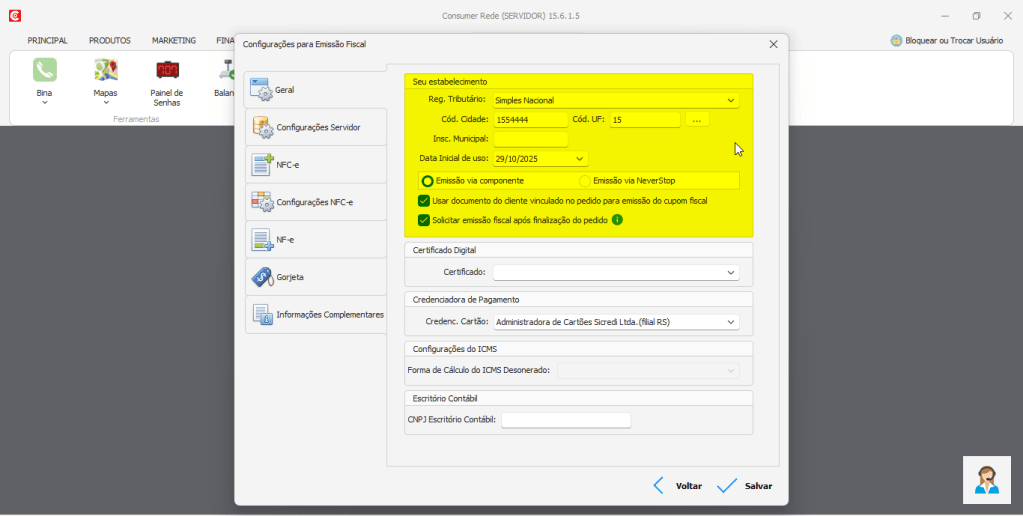 Se você já emitiu notas anteriormente em outro sistema, é necessário solicitar o auxílio da contabilidade para verificar qual foi o número e a série da última NFC-e emitida, garantindo assim que a sequência de numeração seja mantida corretamente no Consumer.