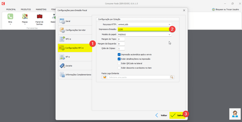 XML_CONSUMER_NFC-e - Após criar a pasta, acesse novamente o sistema e vá em: