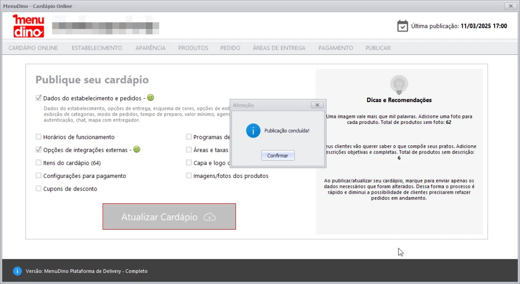 Com a chave de API do Google Maps configurada corretamente no MenuDino, você terá acesso a serviços essenciais como mapas, rotas, geolocalização e acompanhamento em tempo real do entregador. Essa integração melhora a experiência do cliente, otimizando entregas e facilitando a navegação.