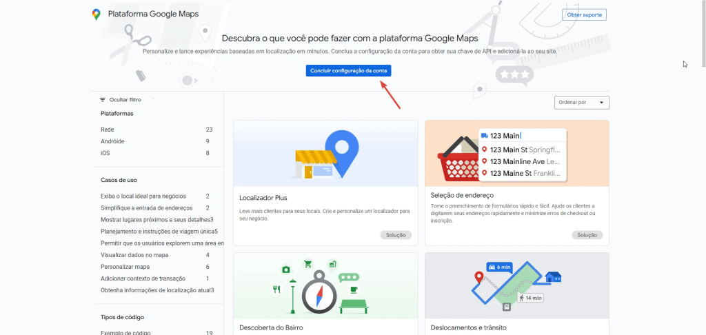 Ativar recursos para uso do Google Maps API