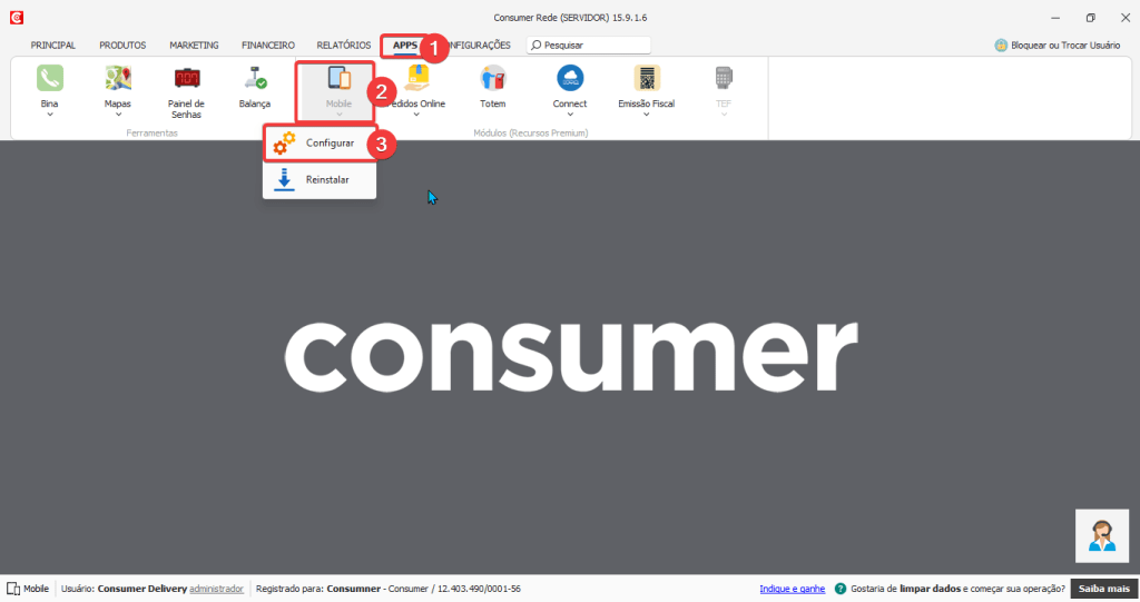 - Assinatura do Consumer PDV + módulo adicional Consumer Mobile;
