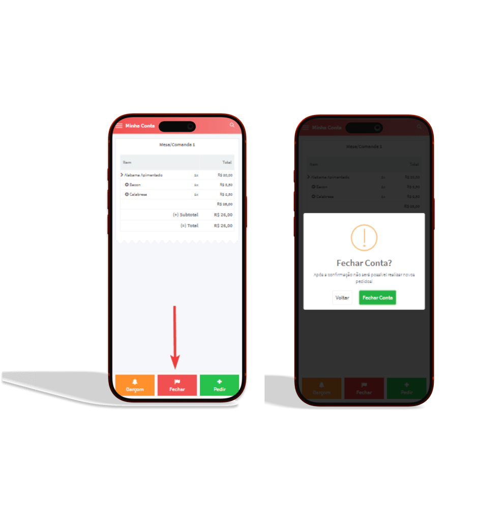 - Avaliação do atendimento: No final do atendimento, ao fazer a solicitação do fechamento da conta, o cliente pode fazer uma avaliação de como foi atendido no estabelecimento.
