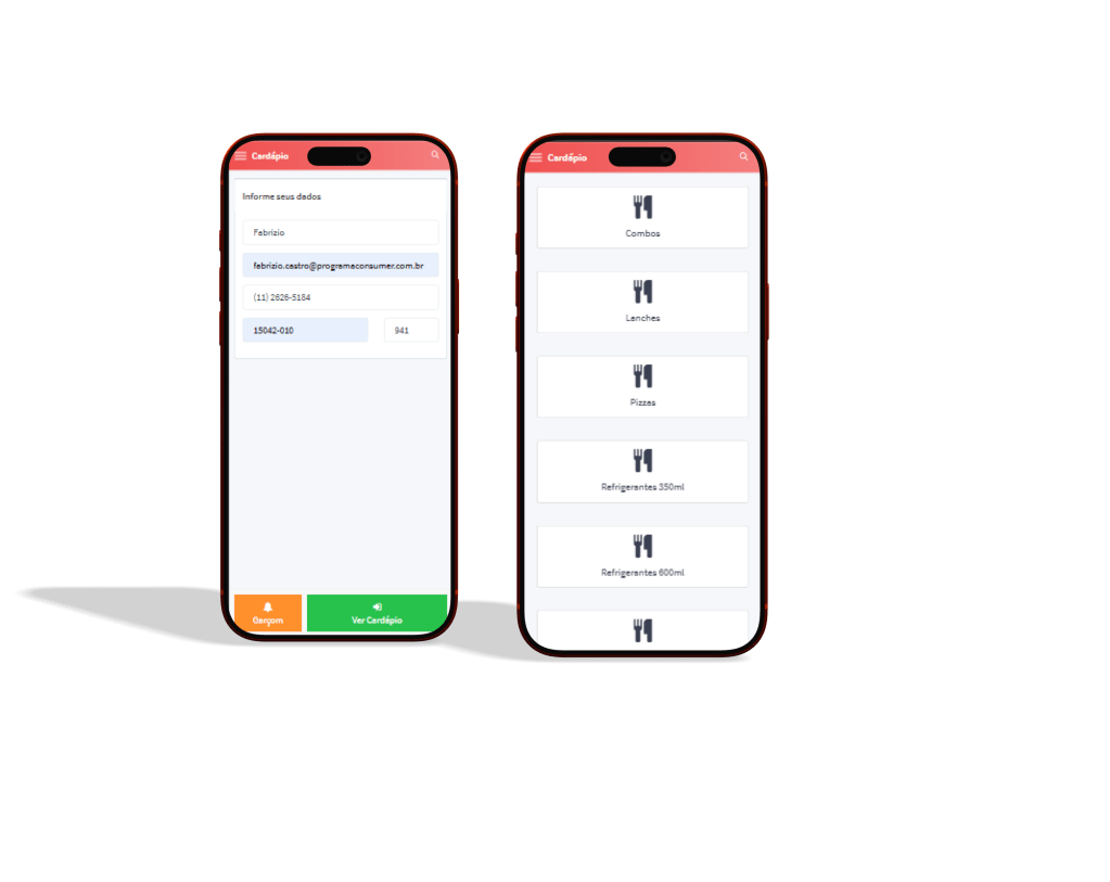 O primeiro passo é acessar ao Consumer e realizar o cadastro de seu cardápio. Cadastre seus produtos no Consumer ordenando-os por categorias. Então, insira fotos, detalhes e preços para cada item do cardápio. Quanto mais detalhes no cadastro, melhor o cliente conseguirá visualizar o seu cardápio. Veja aqui como cadastrar seus produtos.