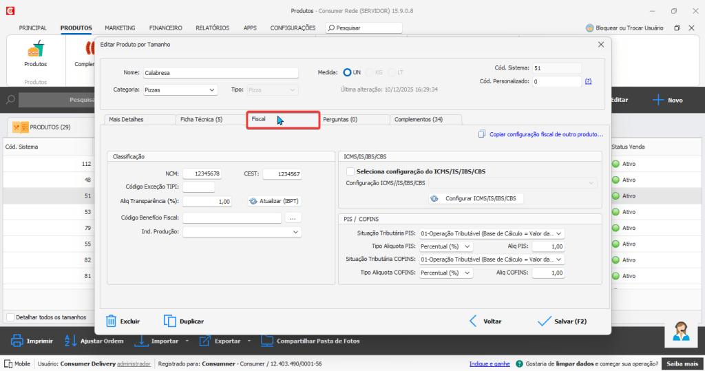.Se você contratou o módulo Fiscal do Consumer, você irá visualizar essa aba para preenchimento dos dados fiscais do produto. Cada tipo de produto possui uma tributação específica, então, preencha com a orientação de seu contador.