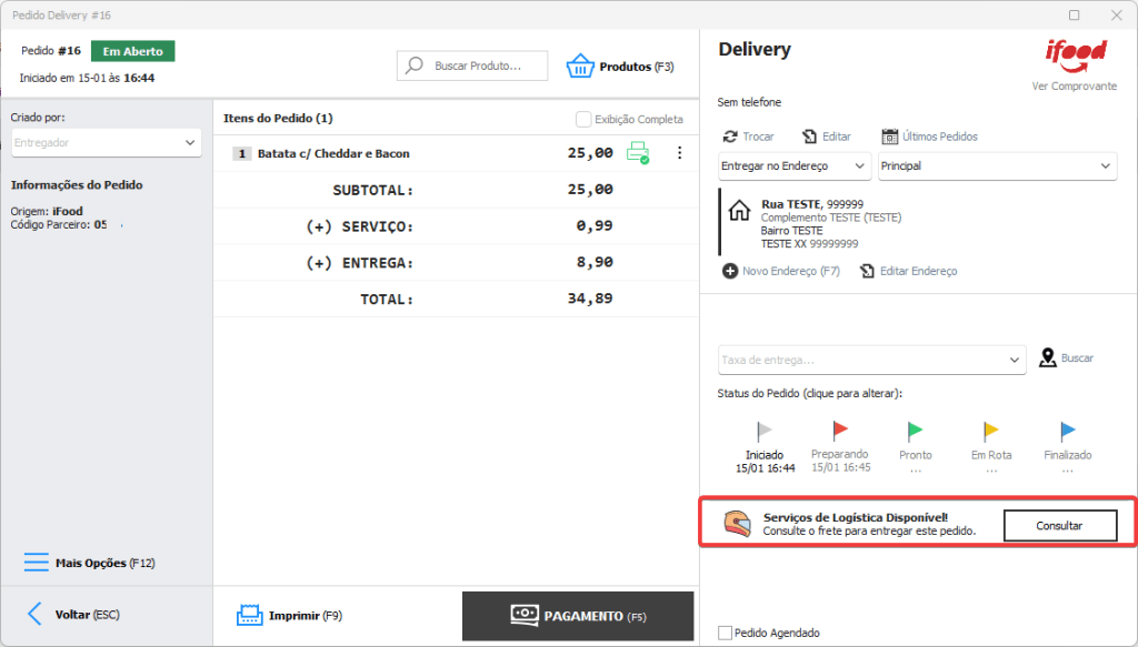 - Selecionar pedidos com formas de pagamento aceitas pelo iFood, conforme disponibilidade.