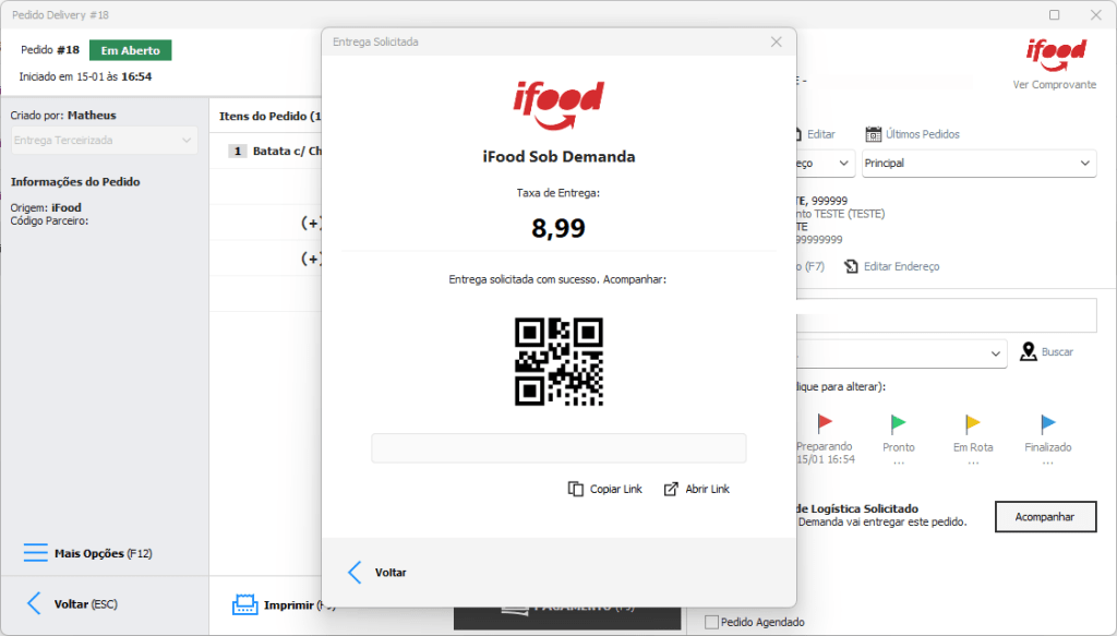 Pronto. O serviço Entrega Sob Demanda do iFood está configurado e integrado ao Consumer, permitindo solicitar entregadores de forma simples, rápida e centralizada.