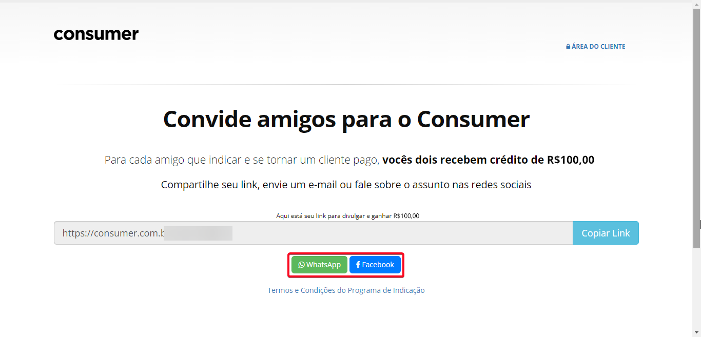 Importante: o programa de indicação é válido para quem não conhece, usou ou testou o Consumer, ou seja, não está em nossa base de dados.